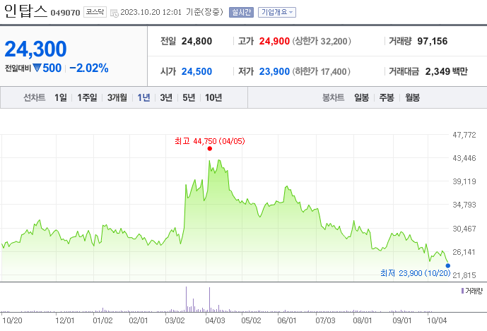 인탑스 주가 분석