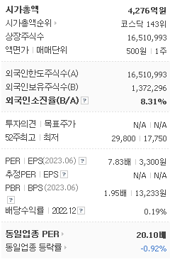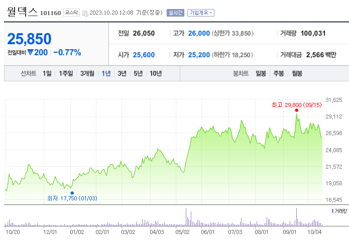 외국인 보유 비중은 180,283% 이며 장중 거래량은 16,510,993를 기록했습니다. 매출액은 1,593억 원, 영업이익은 507억 원을 달성했습니다. EPS는 없음원이며 월덱스 주식 배당수익률은 3,818,766% 입니다.