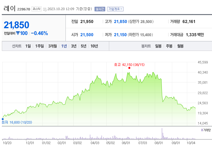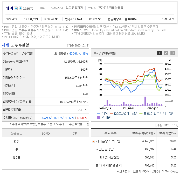 이 글에서는 레이 주가 전망과 목표 주가, 기업 정보에 대해서 설명합니다. 주식 시장에서 중요한 것은 미래의 기업 가치를 예측하고 선제적으로 움직이는 것입니다. 투자 대상을 선택하기 전에 현재 기업의 현황과 데이터를 확인하는 것이 필요합니다. 레이 주식의 주요 현황과 투자 정보를 확인하시고 주식 투자에 도움이 되는 정보들을 모아 제공하니 투자에 도움을 받으실 수 있을 것입니다.
