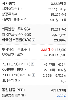 외국인 보유 비중은 153,629% 이며 장중 거래량은 15,279,943를 기록했습니다. 매출액은 594억 원, 영업이익은 162억 원을 달성했습니다. EPS는 797원이며 레이 주식 배당수익률은 % 입니다.