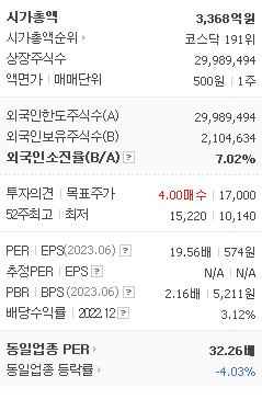 외국인 보유 비중은 137,268% 이며 장중 거래량은 29,989,494를 기록했습니다. 매출액은 2,681억 원, 영업이익은 153억 원을 달성했습니다. EPS는 767원이며 동성화인텍 주식 배당수익률은 3,461% 입니다.