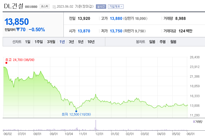 이 글에서는 DL건설 주가 전망과 목표 주가, 기업 정보에 대해서 설명합니다. 주식투자 전에 기업 현황고 현재 시장 흐름에 대해서 정리해보는 것은 아주 중요합니다. DL건설 주식의 주요 현황과 투자 정보를 확인하시고 지금 시장 상태를 분석해보겠습니다.