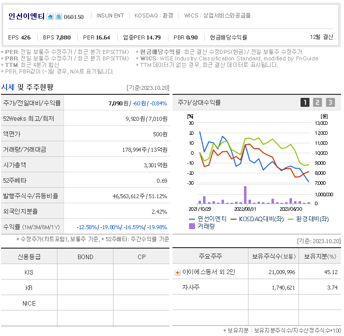 -동사는1997년 설립되어 건설폐기물 및 사업장 폐기물의 중간처리, 재활용골재판매, 소각처리, 매립처리를 진행하고 있음. 건설폐기물 분야 국내 기업 중 유일하게 비계구조물 해체에서부터 건설폐기물의 수집/운반 및 중간처리, 순환골재 생산, 소각 및 스팀판매, 폐기물의 최종처분(매립)까지 폐기물 일괄처리 기술 및 특허를 보유하고 있음. 종속회사인 인선모터스를 통해 자동차해체재활용 및 파쇄재활용사업을 함께 영위하고 있음.