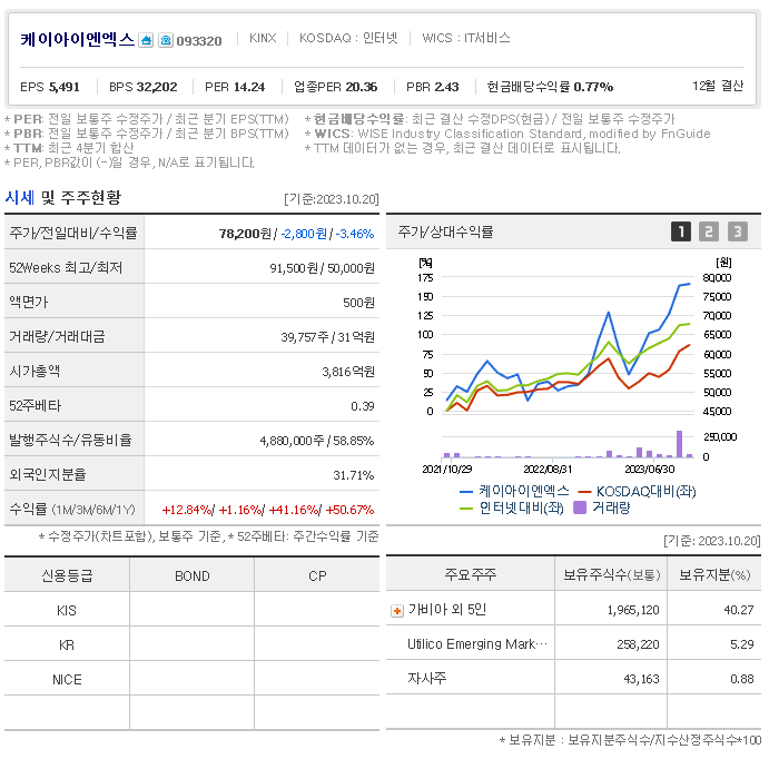 이 글에서는 케이아이엔엑스 주가 전망과 목표 주가, 기업 정보에 대해서 설명합니다. 주식 투자에서 핵심은 미래의 기업 가치를 예상하고 선제적으로 움직이는 것입니다. 투자 대상을 결정하기 전에 현재 기업의 현황과 수치를 검토하는 것이 필요합니다. 케이아이엔엑스 주식의 주요 현황과 투자 정보를 확인하시고 주식 투자에 유용한 자료들을 정리하여 제공하오니 효율적인 투자를 해보세요.