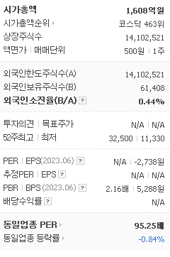 외국인 보유 비중은 8,131% 이며 장중 거래량은 14,102,521를 기록했습니다. 매출액은 63억 원, 영업이익은 -575억 원을 달성했습니다. EPS는 없음원이며 지놈앤컴퍼니 주식 배당수익률은 -445% 입니다.