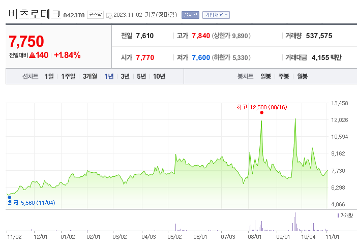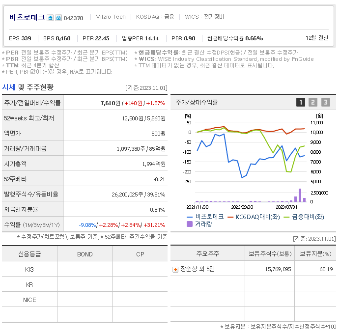 외국인 보유 비중은 1,097,380% 이며 장중 거래량은 26,200,025를 기록했습니다. 매출액은 1,748억 원, 영업이익은 327억 원을 달성했습니다. EPS는 없음원이며 비츠로테크 주식 배당수익률은 79% 입니다.