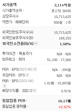외국인 보유 비중은 48,258% 이며 장중 거래량은 10,713,625를 기록했습니다. 매출액은 669억 원, 영업이익은 -118억 원을 달성했습니다. EPS는 없음원이며 디와이피엔에프 주식 배당수익률은 0.65% 입니다.