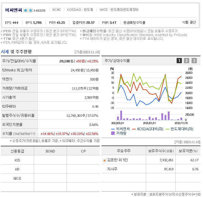 비씨엔씨는 반도체 및 관련장비 기업입니다. 대표자는 김돈한 이며 설립일은 2003/06/20, 주식 상장일은 2022/03/03입니다. 전체 종업원 수는247명 이고 본사 주소는 경기도 이천시 신둔면 마소로57번길 25 비씨엔씨입니다.