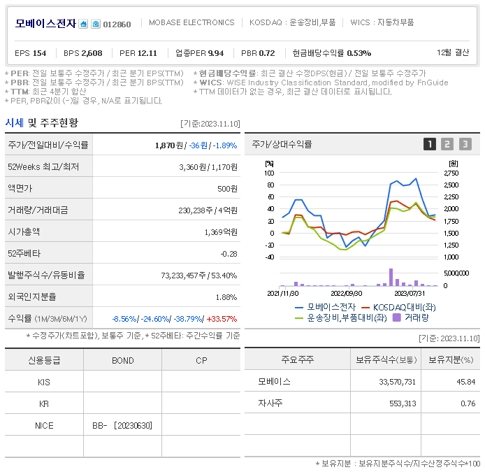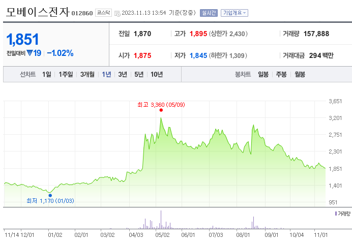 모베이스전자 주가 분석