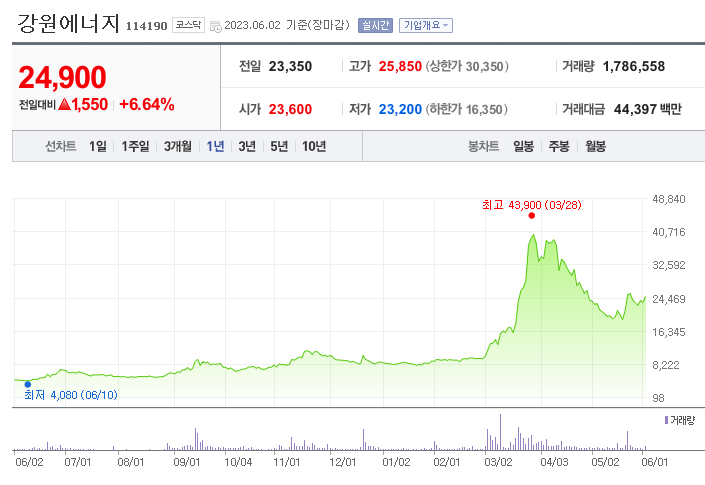 강원에너지 주가 분석