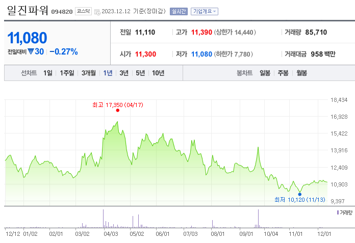 이 글에서는 일진파워 주가 전망과 목표 주가, 기업 정보에 대해서 설명합니다. 주식 시장에서 중요한 것은 미래의 기업 가치를 예측하고 선제적으로 움직이는 것입니다. 투자할 종목을 고르기 전에 현재 기업의 현황과 데이터를 확인하는 것이 필요합니다. 일진파워 주식의 주요 현황과 투자 정보를 확인하시고 주식 투자에 유용한 정보들을 한 곳에 정리해두었으니 투자 전에 확인하시기 바랍니다.