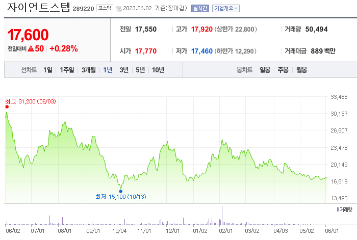 외국인 보유 비중은 53,580%이며 장중 거래량은 22,121,745를 기록했습니다. 매출액은 103억 원, 영업이익은 -179억 원을 달성했습니다. EPS는 없음원이며 자이언트스텝 주식 배당수익률은 4,081,646%입니다.