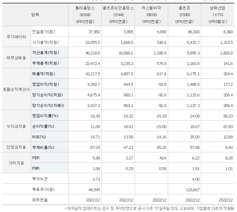 -2023년 6월 전년동기 대비 연결기준 매출액은 0.5% 증가, 영업이익은 21.4% 감소, 당기순이익은 63.7% 감소. 2분기 Acushnet 실적 선방에도 불구하고 연결기준 영업이익 919억원으로 컨센서스 영업이익(1,190억원)을 -23% 하회하는 어닝 쇼크를 기록함. 하반기 미국 과재고 소진을 위한 할인 판매 지속, 국내 홀세일 채널 및 비효율 점포 조정 중이며, 실적 개선에 시간이 필요함.
