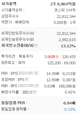 외국인 보유 비중은 283,258% 이며 장중 거래량은 22,812,344를 기록했습니다. 매출액은 87,073억 원, 영업이익은 4,118억 원을 달성했습니다. EPS는 9,387원이며 CJ대한통운 주식 배당수익률은 0.53% 입니다.