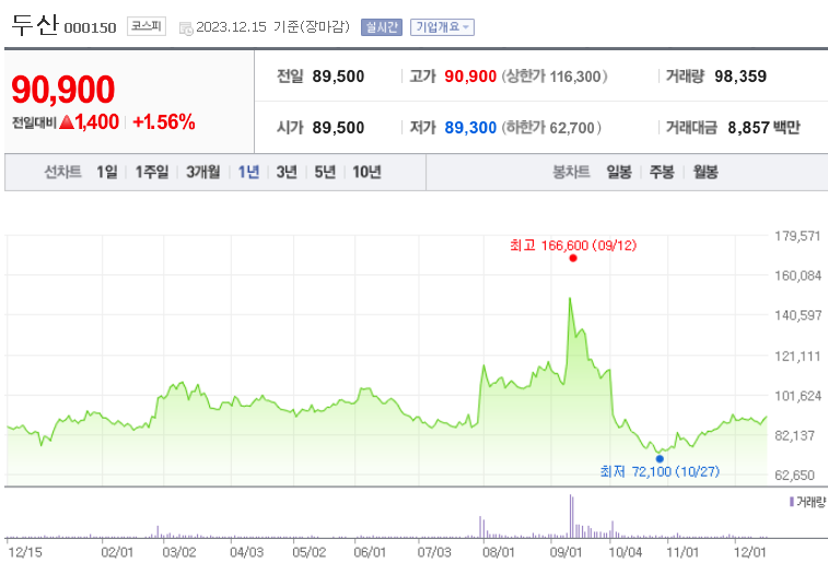 이 글에서는 두산 주가 전망과 목표 주가, 기업 정보에 대해서 설명합니다. 주식 거래에서 주목해야 할 점은 미래의 기업 가치를 예측하고 먼저 움직이는 것입니다. 투자 대상을 선택하기 전에 현재 기업 상황과 지표를 살펴보아야 합니다. 두산 주식의 주요 현황과 투자 정보를 확인하시고 주식 투자에 유용한 자료들을 정리하여 제공하오니 효율적인 투자를 해보세요.