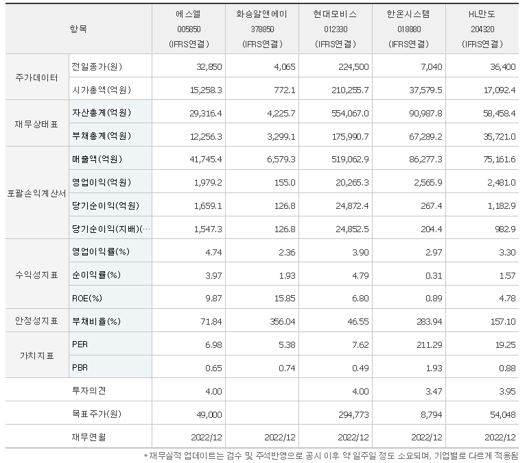 -2023년 6월 전년동기 대비 연결기준 매출액은 32.5% 증가, 영업이익은 99.4% 증가, 당기순이익은 94.2% 증가. 미국 G.M.社로부터 G.M.에 납품하는 전세계 모든 부품업체를 대상으로 품질, 서비스, 기술, 가격 등에서 우수한 업체를 선정하여 시상하는 QSTP AWARD를 25회 수상함. 헤드램프 부문에서 국내시장 점유율은 2023년 1분기 기준 66.6% (동사 추정치)를 차지하고 있음.