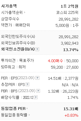 외국인 보유 비중은 17,918% 이며 장중 거래량은 28,991,282를 기록했습니다. 매출액은 9,774억 원, 영업이익은 918억 원을 달성했습니다. EPS는 2,071원이며 동원시스템즈 주식 배당수익률은 9,669% 입니다.