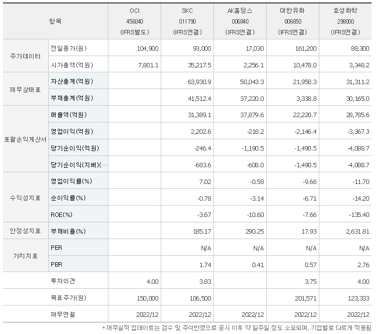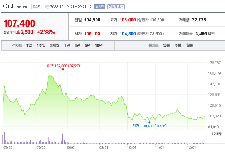 이 글에서는 OCI 주가 전망과 목표 주가, 기업 정보에 대해서 설명합니다. 주식 거래에서 중요한 부분은 현재 기업 가치보다는 미래의 기업 가치를 예측하고 먼저 행동하는 것입니다. 투자할 종목을 고르기 전에 현재 기업의 상황과 지표를 살펴보는 것이 중요합니다. OCI 주식의 주요 현황과 투자 정보를 확인하시고 주식 투자에 도움이 될 만한 정보들을 모아 놓았으니 투자를 고려하실 때 참고하세요.