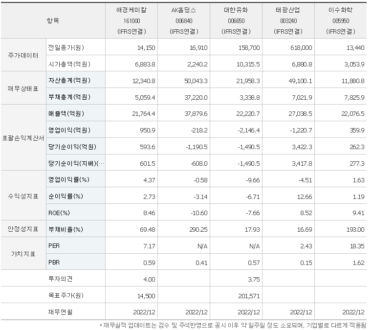 애경케미칼 가치 분석