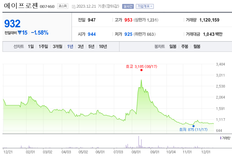 에이프로젠 주가 분석