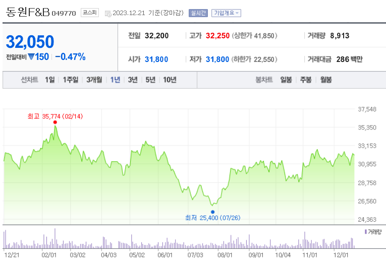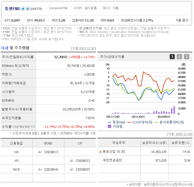 동원F&B 주가 분석