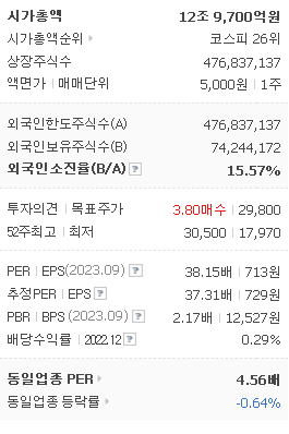 외국인 보유 비중은 15.64% 이며 장중 거래량은 625,013원 을 기록했습니다. 매출액은 8,047억 원을 달성했습니다. EPS는 727원이며 카카오뱅크 주식 배당수익률은 0.33% 입니다.