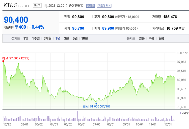 KT&G 주가 분석