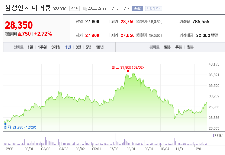 이 글에서는 삼성엔지니어링 주가 전망과 목표 주가, 기업 정보에 대해서 설명합니다. 주식 투자의 핵심은 현재의 기업 가치보다는 미래의 가치를 예측하며 먼저 대응하는 것입니다. 투자 대상을 결정하기 위해 먼저 현재 기업 상태와 수치를 검토해야 합니다. 삼성엔지니어링 주식의 주요 현황과 투자 정보를 확인하시고 주식 투자에 도움을 줄 자료들을 모아 두었으니 투자에 도움을 받으시길 바랍니다.