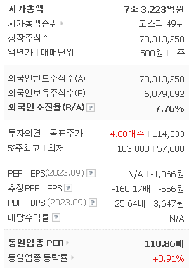 외국인 보유 비중은 7.79% 이며 장중 거래량은 162,501원 을 기록했습니다. 매출액은 2,281억 원을 달성했습니다. EPS는 -556원이며 SK바이오팜 주식 배당수익률은 % 입니다.