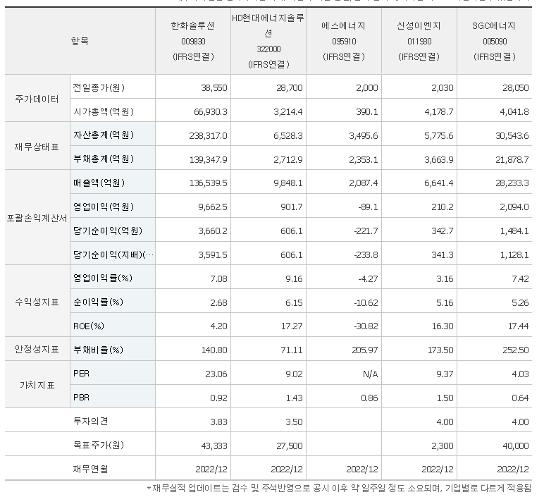 -2023년 6월 전년동기 대비 연결기준 매출액은 6.3% 증가, 영업이익은 11.1% 증가, 당기순이익은 63.7% 감소. 태양광 산업은 선벨트 지역 국가를 중심으로 정부의 보조금 지원 없이도, 기존 에너지원 대비 경제성 및 경쟁력이 크게 개선되고 있음. 동사의 태양관 산업은 파리 기후 협약 등 기후 및 환경에 대한 친환경 에너지 육성 정책에 힘입어, 중장기적으로 성장이 예상됨.
