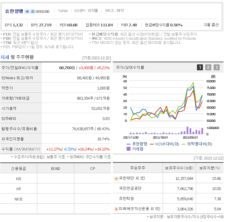 이 글에서는 유한양행 주가 전망과 목표 주가, 기업 정보에 대해서 설명합니다. 주식 거래에서 주목해야 할 점은 미래의 기업 가치를 예측하고 먼저 움직이는 것입니다. 투자 대상을 선택하기 전에 현재 기업 상황과 지표를 살펴보아야 합니다. 유한양행 주식의 주요 현황과 투자 정보를 확인하시고 주식 투자에 도움을 줄 자료들을 모아 두었으니 투자 결정에 도움을 받으시길 바랍니다.