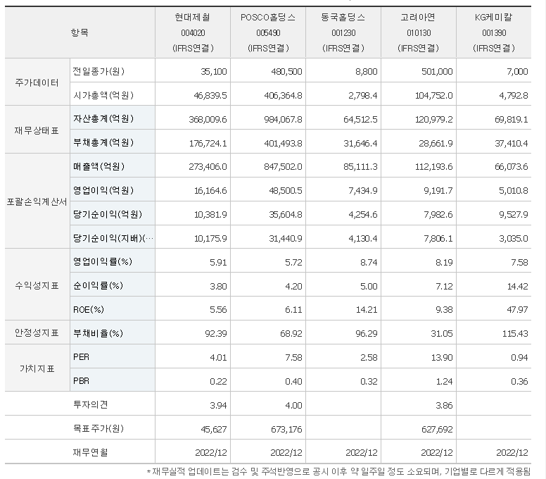 이 글에서는 현대제철 주가 전망과 목표 주가, 기업 정보에 대해서 설명합니다. 주식 거래에서 중요한 점은 미래 기업 가치를 예상하며 선제적으로 움직이는 것입니다. 투자할 종목을 고르기 전에 현재 기업 상황과 지표를 살펴야 합니다. 현대제철 주식의 주요 현황과 투자 정보를 확인하시고 주식 투자에 도움이 되는 정보들을 한 곳에 모아 두었으니 참고하시면 좋을 것입니다.
