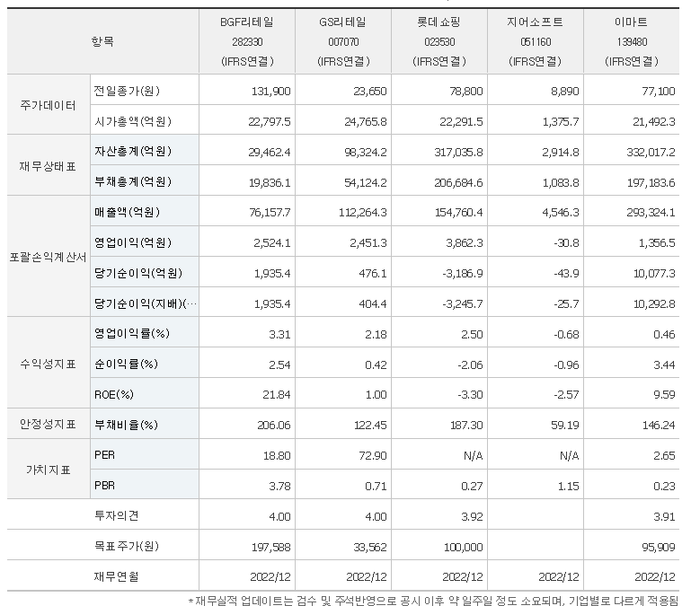 이 글에서는 BGF리테일 주가 전망과 목표 주가, 기업 정보에 대해서 설명합니다. 주식 시장에서 중요한 것은 미래의 기업 가치를 예측하고 선제적으로 움직이는 것입니다. 투자할 종목을 고르기 전에 현재 기업의 현황과 데이터를 확인하는 것이 필요합니다. BGF리테일 주식의 주요 현황과 투자 정보를 확인하시고 주식 투자를 고민하고 계시다면 유용한 정보들을 모아 놓은 자료를 확인해보세요.