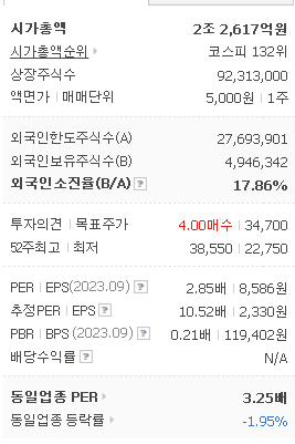 외국인 보유 비중은 5.36% 이며 장중 거래량은 113,021원 을 기록했습니다. 매출액은 339,468억 원을 달성했습니다. EPS는 2,330원이며 한국가스공사 주식 배당수익률은 % 입니다.