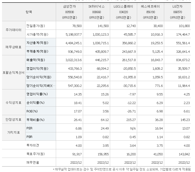 이 글에서는 삼성전자 주가 전망과 목표 주가, 기업 정보에 대해서 설명합니다. 주식 시장에서 중요한 것은 미래의 기업 가치를 예측하고 선제적으로 움직이는 것입니다. 투자 대상을 선택하기 전에 현재 기업의 현황과 데이터를 확인하는 것이 필요합니다. 삼성전자 주식의 주요 현황과 투자 정보를 확인하시고 주식 투자에 도움이 될 만한 정보들을 모아 놓았으니 투자 시 참고하시기 바랍니다.