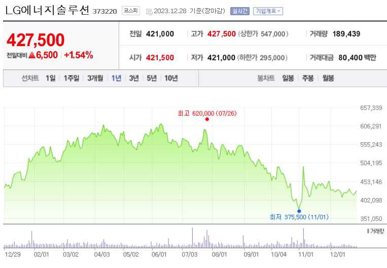 이 글에서는 LG에너지솔루션 주가 전망과 목표 주가, 기업 정보에 대해서 설명합니다. 주식 거래에서 중요한 부분은 현재 기업 가치보다는 미래의 기업 가치를 예측하고 먼저 행동하는 것입니다. 투자할 종목을 고르기 전에 현재 기업의 상황과 지표를 살펴보는 것이 중요합니다. LG에너지솔루션 주식의 주요 현황과 투자 정보를 확인하시고 주식 투자를 고려하고 계신다면 유용한 정보들을 모아 놓은 자료를 확인해보세요.