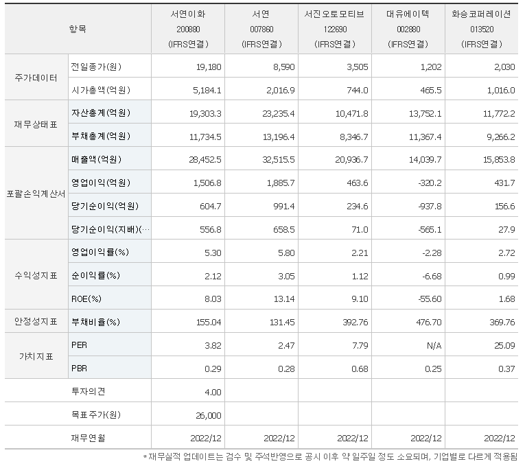서연이화 가치 분석