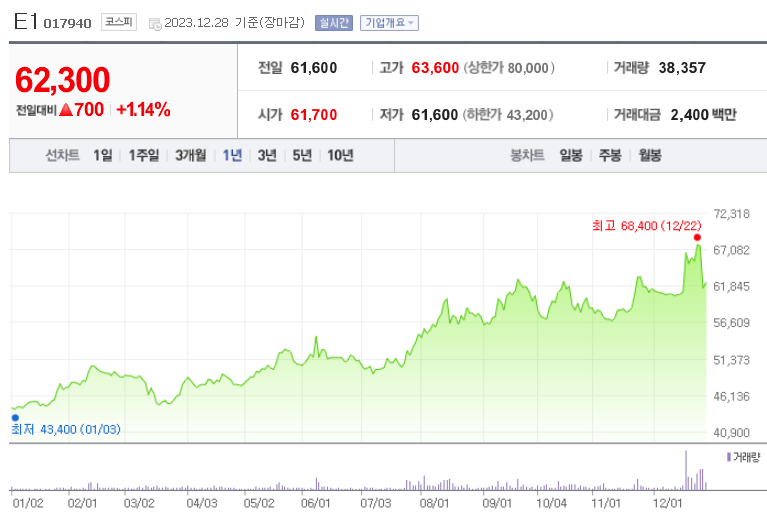 이 글에서는 E1 주가 전망과 목표 주가, 기업 정보에 대해서 설명합니다. 주식 거래에서 주목해야 할 점은 미래의 기업 가치를 예측하고 먼저 움직이는 것입니다. 투자 대상을 선택하기 전에 현재 기업 상황과 지표를 살펴보아야 합니다. E1 주식의 주요 현황과 투자 정보를 확인하시고 주식 투자에 도움이 될 수 있는 정보들을 모아 제공하오니 참고하시면 도움이 될 것입니다.