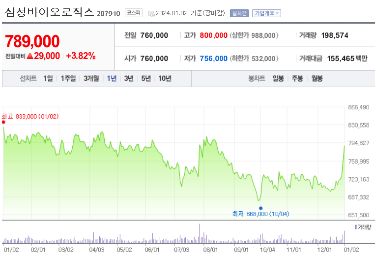 이 글에서는 삼성바이오로직스 주가 전망과 목표 주가, 기업 정보에 대해서 설명합니다. 주식 투자에서 핵심은 미래의 기업 가치를 예상하고 선제적으로 움직이는 것입니다. 투자 대상을 결정하기 전에 현재 기업의 현황과 수치를 검토하는 것이 필요합니다. 삼성바이오로직스 주식의 주요 현황과 투자 정보를 확인하시고 주식 투자에 도움이 되는 자료를 모아두었으니 참고하셔서 투자에 도움을 받으시길 바랍니다.