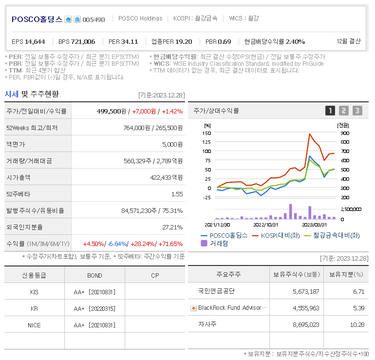 POSCO홀딩스 주가 분석