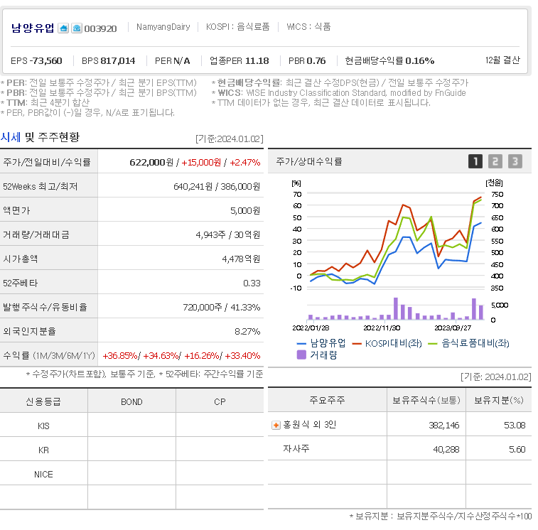 남양유업 주가 분석