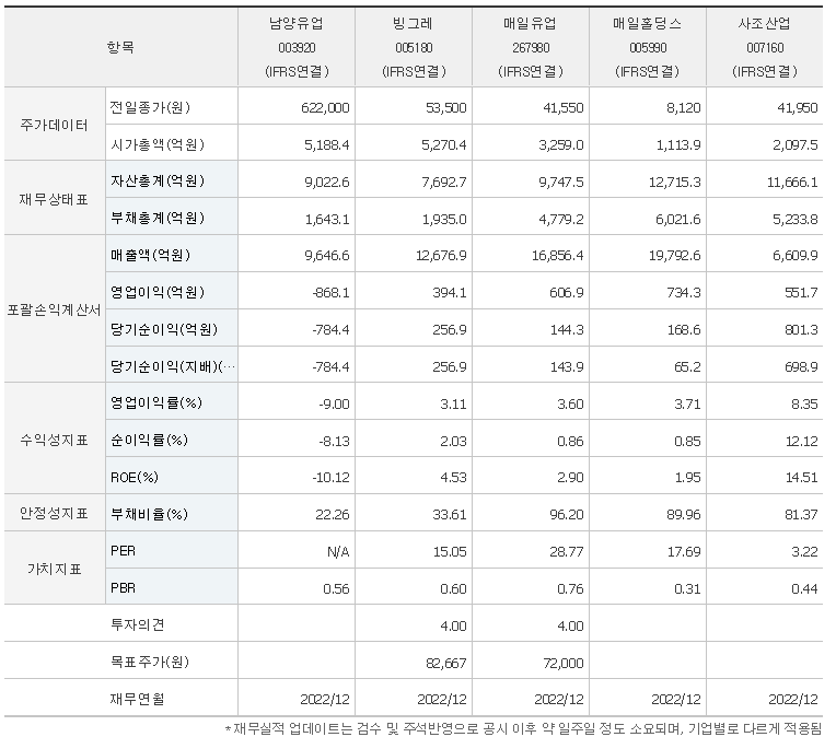 -2023년 9월 전년동기 대비 연결기준 매출액은 4.5% 증가, 영업손실은 53.6% 감소, 당기순손실은 31.9% 감소. 주요 제품인 임페리얼 XO 가격이 0.83% 증가하였으며 맛있는 우유 GT의 경우 12.4% 증가함. 판매단가는 상승하고 주요원재료 매입액은 감소함에 따라 영업손실은 감소함. 분유 분야에서 최근 해외 브랜드 수입업체 증가 및 다수 국내 업체들의 분유 시장 진출로 인하여 경쟁이 치열해지고 있음.