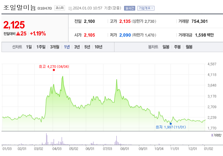 조일알미늄 주가 분석