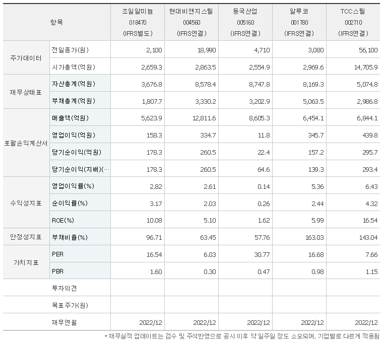 조일알미늄 가치 분석