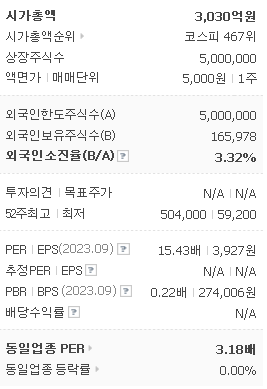 외국인 보유 비중은 3.34% 이며 장중 거래량은 14,880원 을 기록했습니다. 매출액은 11,595억 원을 달성했습니다. EPS는 없음원이며 서울가스 주식 배당수익률은 2.22% 입니다.