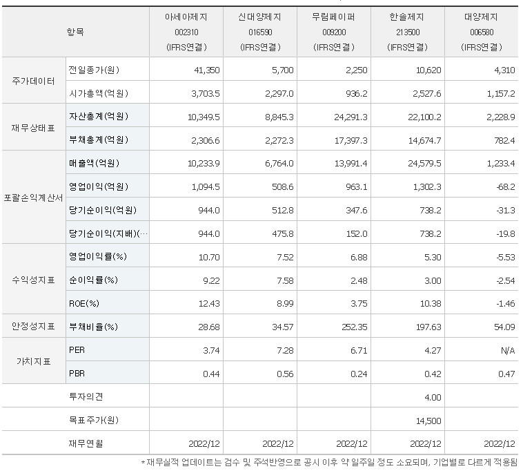 아세아제지 가치 분석