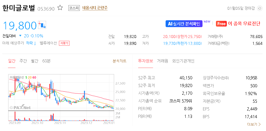한미글로벌 주식 결론