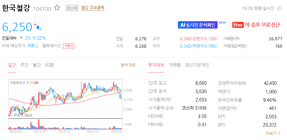 한국철강 가치 분석