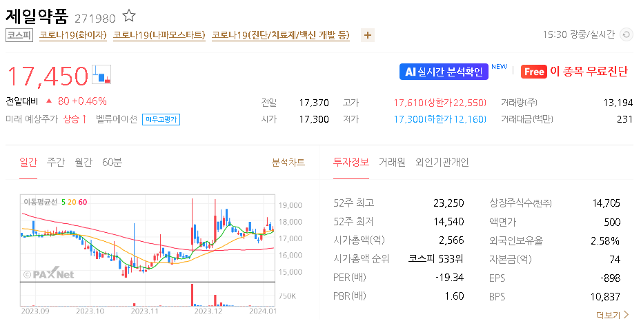 이 글에서는 제일약품 주가 전망과 목표 주가, 기업 정보에 대해서 설명합니다. 주식 투자의 핵심은 현재의 기업 가치보다는 미래의 가치를 예측하며 먼저 대응하는 것입니다. 투자 대상을 결정하기 위해 먼저 현재 기업 상태와 수치를 검토해야 합니다. 제일약품 주식의 주요 현황과 투자 정보를 확인하시고 주식 투자에 도움이 될 만한 정보들을 모아 놓았으니 투자 시 참고하시기 바랍니다.