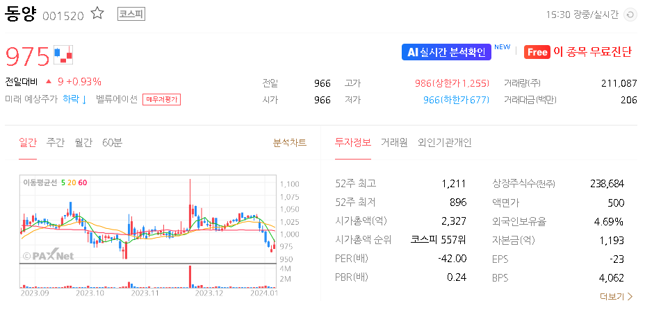동양 주가 분석